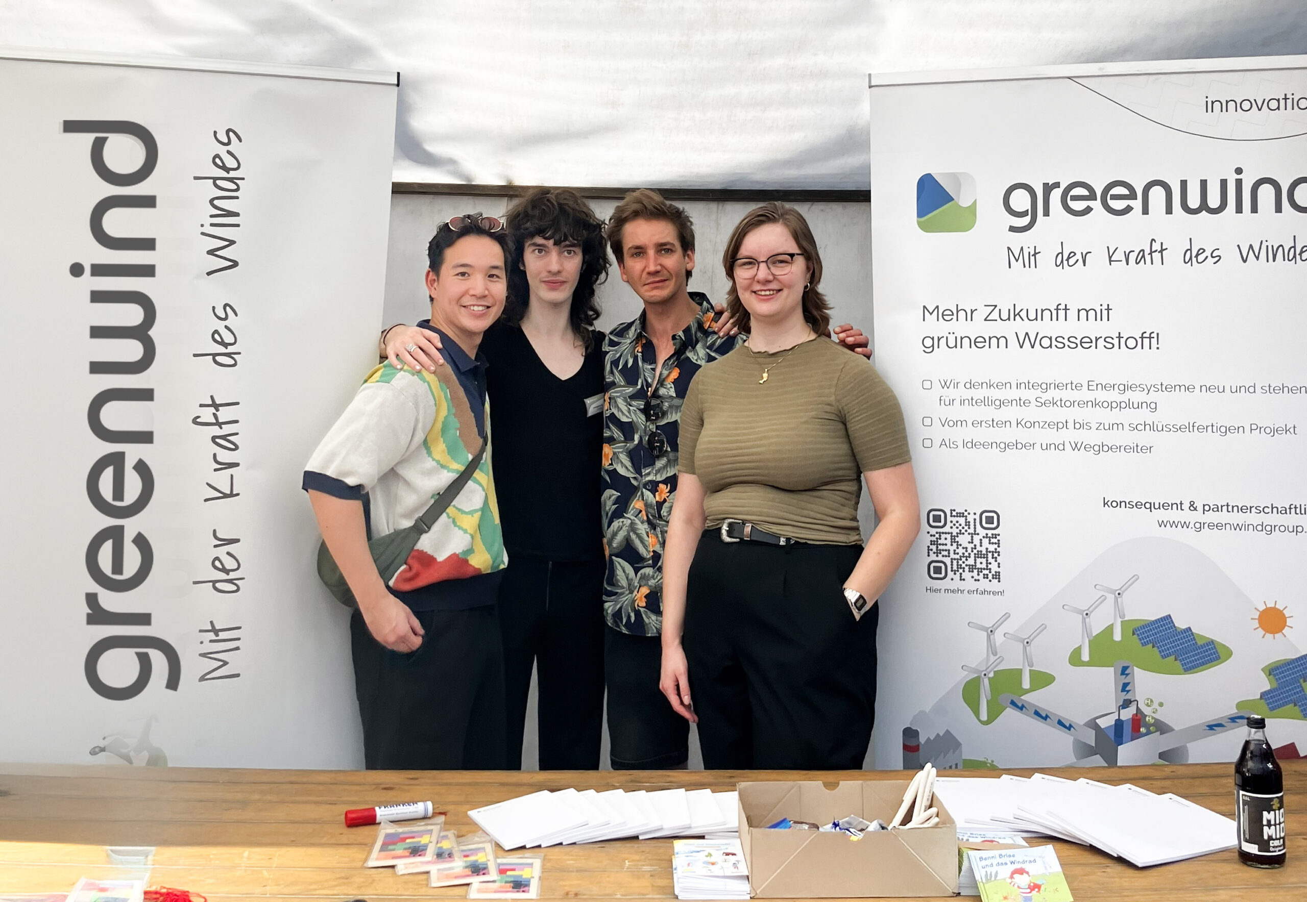 Am Stand in Berlin-Moabit kamen viele der Themen zur Sprache (Foto v.l. Michael Nguyen, Christopher Curran, Maximilian Hinz und Lena Kühnast). Für den Nachwuchs verteilten die greenwindler:innen zudem Pixie Bücher „Benni Briese und das Windrad“. Wer sich weiterführend über Windenergie informieren will, dem seien die Info-Seiten Bundesverband WindEnergie e.V.